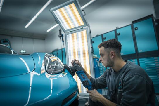Unsere professionelle Wachs- und Politurbehandlung schützt den Lack deines Fahrzeugs und bringt es zum Strahlen.
