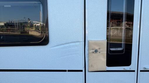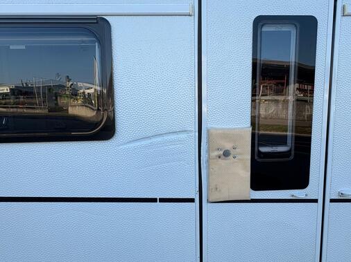 Wie schnell ist es passiert: Ein kurzer Moment der Unachtsamkeit beim Rangieren – und schon kommt es zu einem seitlichen Streifschaden am Wohnwagen. Die Aussenhaut aus Strukturblech wird dabei beschädigt und weist eine deutlich sichtbare Schramme auf.